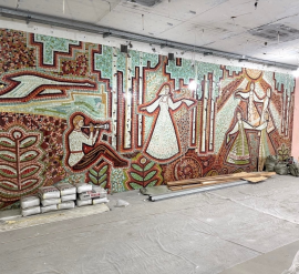 В Димитровграде при проведении ремонтных работ в помещении магазина строительных материалов на улице Гагарина была сделана неожиданная находка Историко‑культурный фонд «Мелекесъ» обратил внимание общественности на значимость открытия: «Посмотрите, какая красота спрятана в самом центре нашего города! Узоры, цвета… Это настоящий кусочек прошлого Димитровграда, живая история, которая была скрыта с советского времени». Представители фонда выразили серьёзную