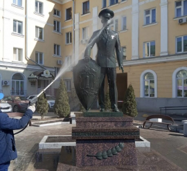 Городской центр по благоустройству и озеленению провёл очистку скульптур и памятников от осевшей пыли и грязи Специалисты использовали водяной поток, чтобы бережно вернуть первозданный вид знаковым объектам города. В числе очищенных монументов — памятники Владимиру Ленину, Валентине Леонтьевой, Аркадию Пластову и Богдану Хитрово. Кроме того, сотрудники центра привели в порядок монумент «На страже правопорядка». Аналогичную